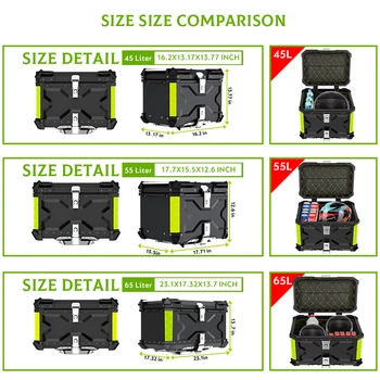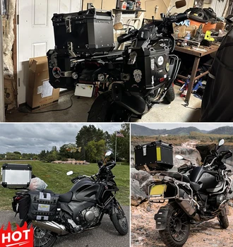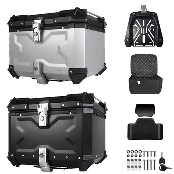 45L/55L/65L CNC Aluminum Universal Top Case Motorcycle Tail Box Trunk Luggage Storage Hard Case Rear Rack Lockable Waterproof and Anti-Collision for Motorcycle and Scooter